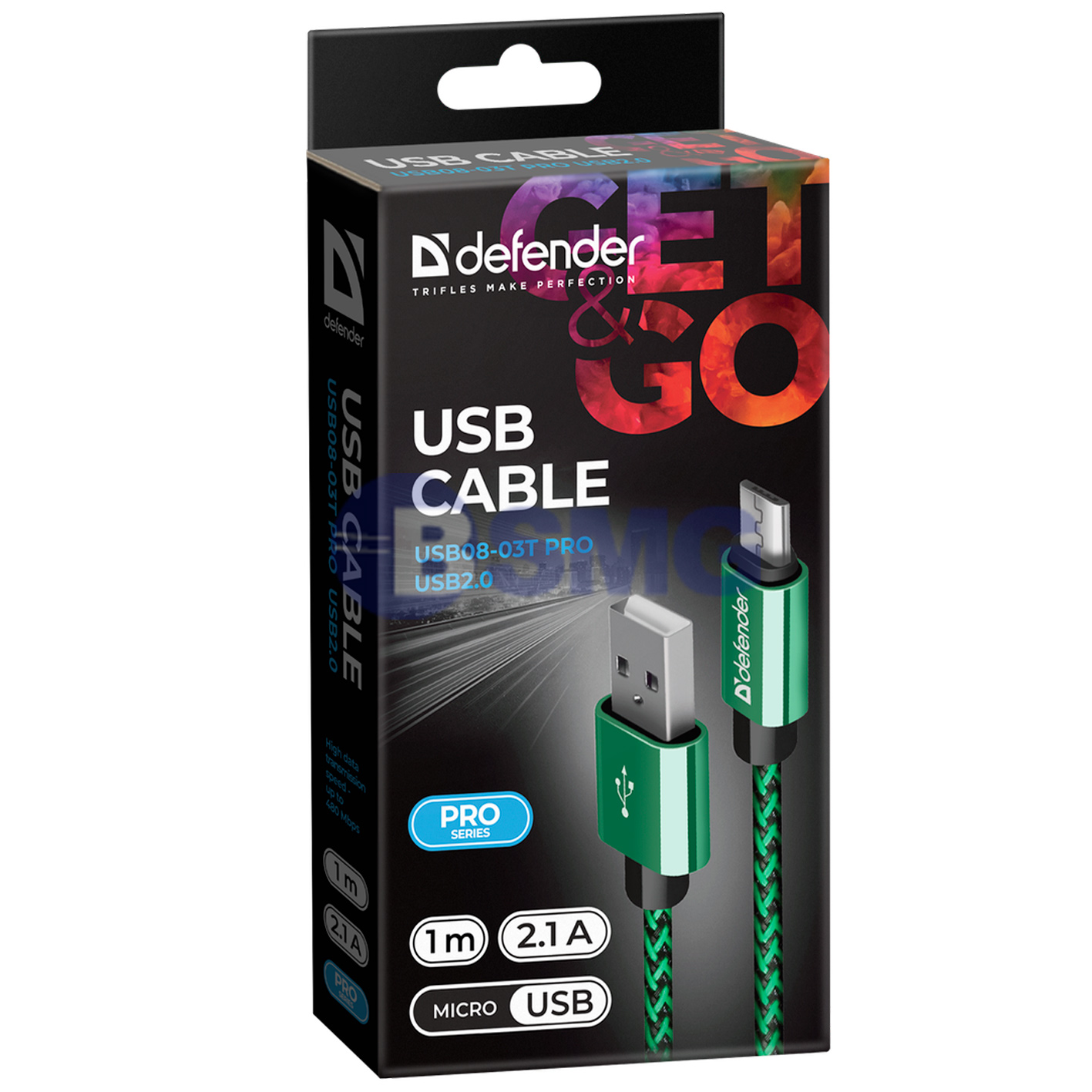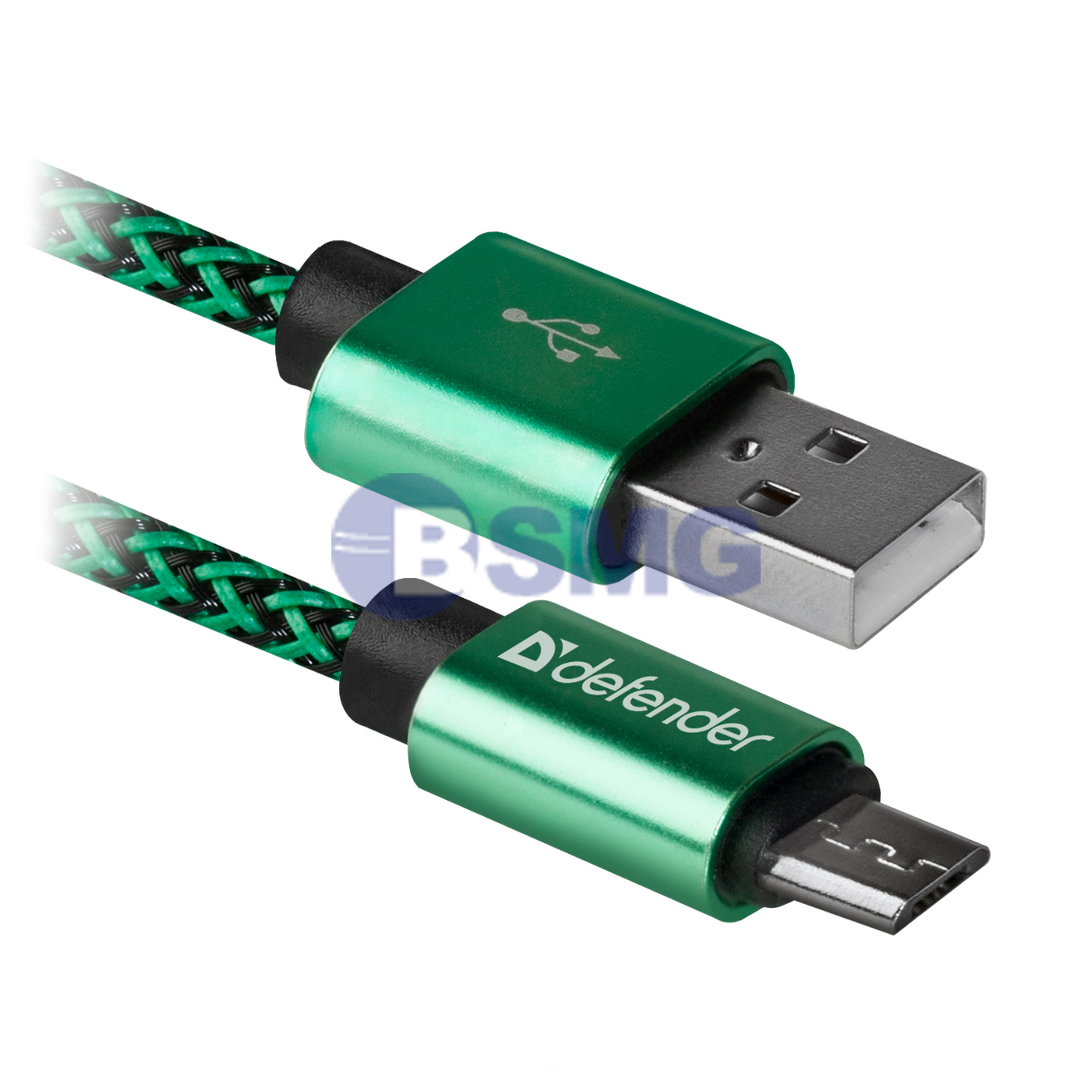 USB cable Defender USB08-03T PRO USB2.0 Green, AM-MicroBM, 1m, 2.1A 023803