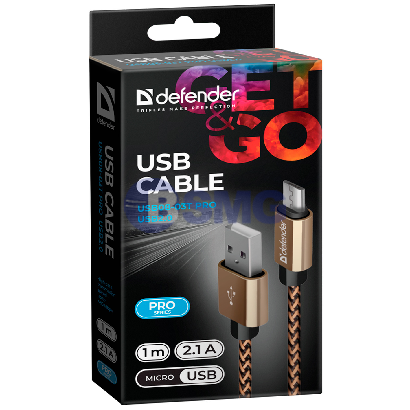 USB cable Defender USB08-03T PRO USB2.0 Golden, AM-MicroBM, 1m, 2.1A 023806