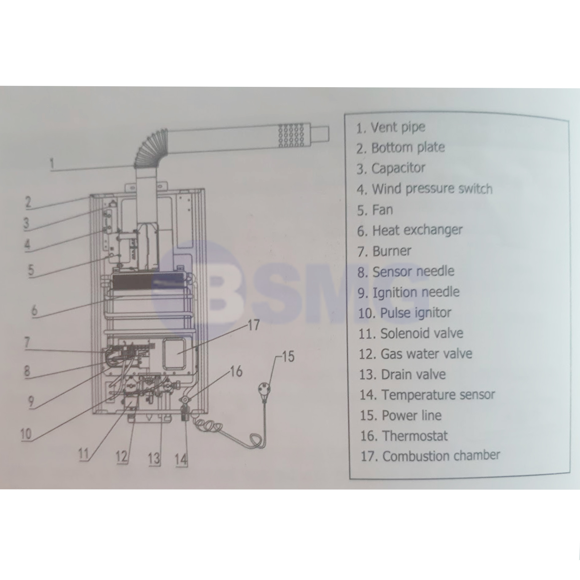 KL040 გაზის წყლის გამაცხელებელი ტრუბით კომპლექტი 24L 016419