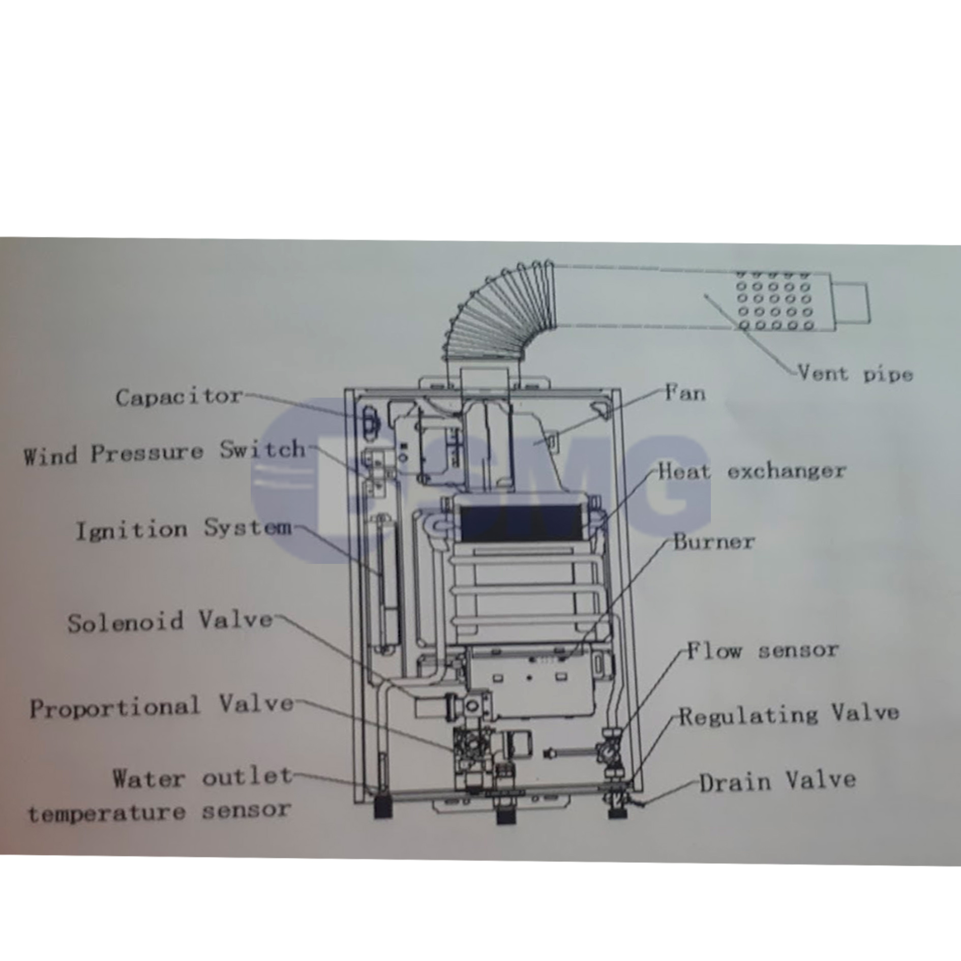 KL012 გაზის წყლის გამაცხელებელი ტრუბით კომპლექტი 24L 012445