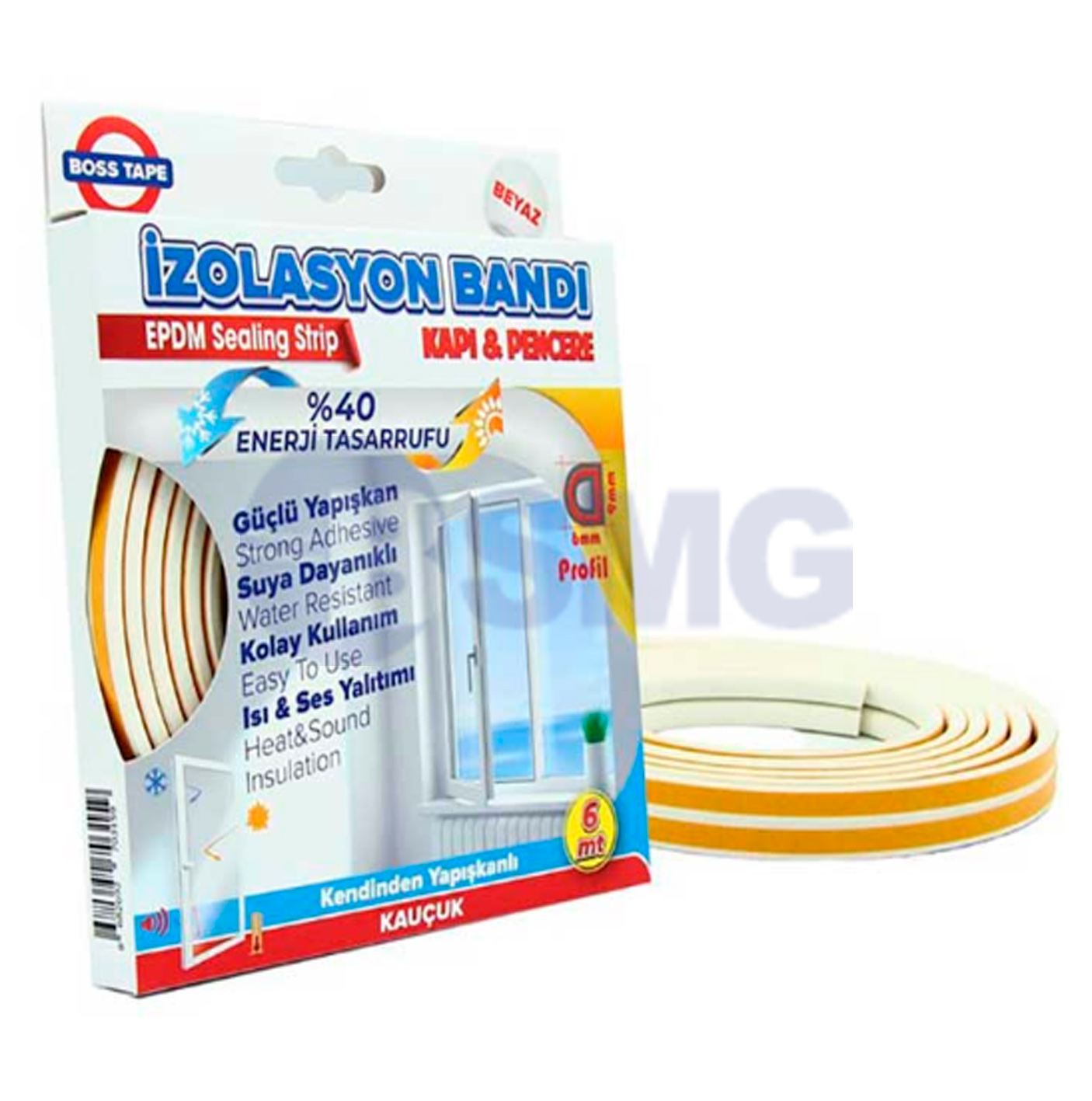 ფანჯრის შემამჭიდროებელი ლენტი D-პროფილი 9მმ X 6მ თეთრი 026385